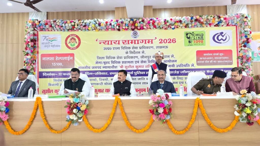 जौनपुर। न्याय समागम–2026 के अंतर्गत उत्तर प्रदेश राज्य विधिक सेवा प्राधिकरण, लखनऊ के निर्देशन में जिला विधिक सेवा प्राधिकरण जौनपुर द्वारा पुलिस लाइन परिसर में मेगा न्याय सहायता शिविर का आयोजन किया गया। कार्यक्रम का शुभारंभ माननीय जनपद न्यायाधीश/अध्यक्ष जिला विधिक सेवा प्राधिकरण सुशील कुमार शशि के निर्देशानुसार दीप प्रज्वलन व माँ सरस्वती के चित्र पर माल्यार्पण कर किया गया।